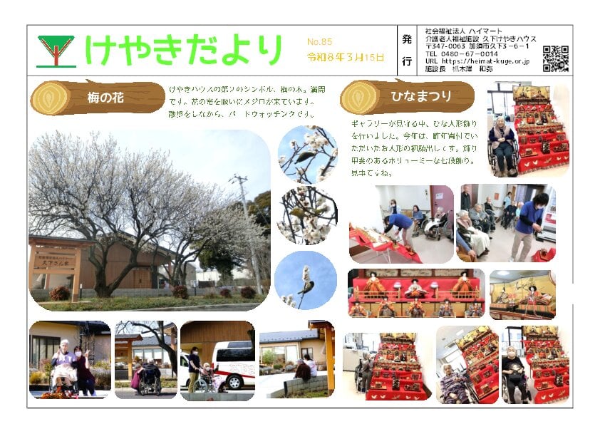 介護老人福祉施設 久下けやきハウスは、加須市内の閑静な住宅街に位置し、施設の中庭には見上げるほど大きなけやきの木、施設周辺には四季の花々や緑を楽しめる環境です。居室は全室個室となっており、ユニットケア方式を採用しているため、家庭的な雰囲気の中で生活することができます。